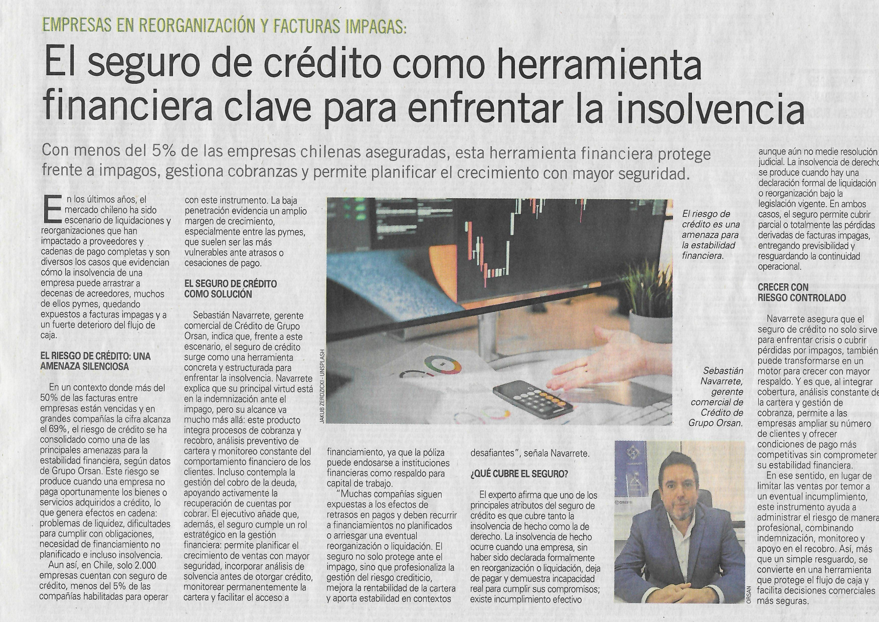 ORSAN Seguros en El Mercurio: Seguro de Crédito como herramienta para prevenir insolvencias